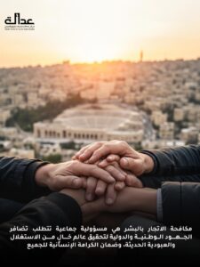 مرحبًا بكم في الموقع الالكتروني لمركز عدالة لدراسات حقوق الإنسان نؤمن في مركز عدالة بأن تعزيز حقوق الإنسان وسيادة القانون هو أساس بناء مجتمعات أكثر عدلًا وإنصافًا. منذ تأسيسنا عام 2003 في الأردن، نعمل باستقلالية وشفافية على نشر ثقافة حقوق الإنسان، والدفاع عن الفئات المهمشة، وتقديم الدعم القانوني، بالإضافة إلى بناء قدرات الأفراد والمؤسسات لمناصرة الحقوق والحريات الأساسية. من خلال برامجنا المتنوعة في البحث والتدريب والدفاع، نلتزم بإحداث تغيير إيجابي ومستدام في الأردن والعالم العربي، متبنين أحدث الوسائل والتقنيات لتعزيز الوعي وحماية الحقوق في العصر الرقمي. نؤمن بأهمية الابتكار في نشر ثقافة حقوق الإنسان، ونعمل على دمج التكنولوجيا في جهودنا لضمان وصول أوسع للمعلومات والموارد الحقوقية. كما نولي اهتمامًا خاصًا لحقوق الإنسان في العصر الرقمي، ونسعى لتعزيز الحوار بين الثقافات لتعزيز التفاهم والتسامح. ندعوكم لاستكشاف موقعنا والتفاعل مع برامجنا وأنشطتنا، والمساهمة معنا في بناء مستقبل يحترم حقوق الجميع دون تمييز.شكرًا لزيارتكم، ونتطلع إلى تعاونكم ودعمكم المستمر نرحب بكم لاستكشاف أنشطتنا والانضمام إلينا في مسعانا نحو مجتمعات تحترم الكرامة الإنسانية وتؤمن بالعدالة للجميع.