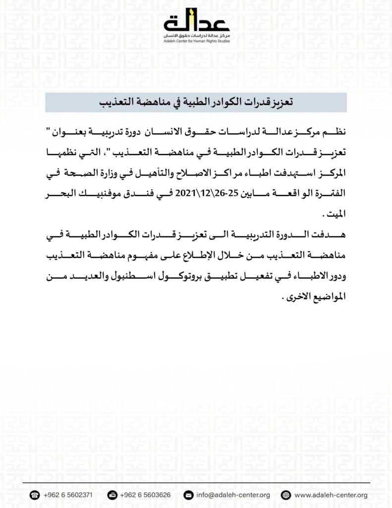 ورشة تدريبية – تعزيز قدرات الكوادر الطبية في مناهضة التعذيب – 2