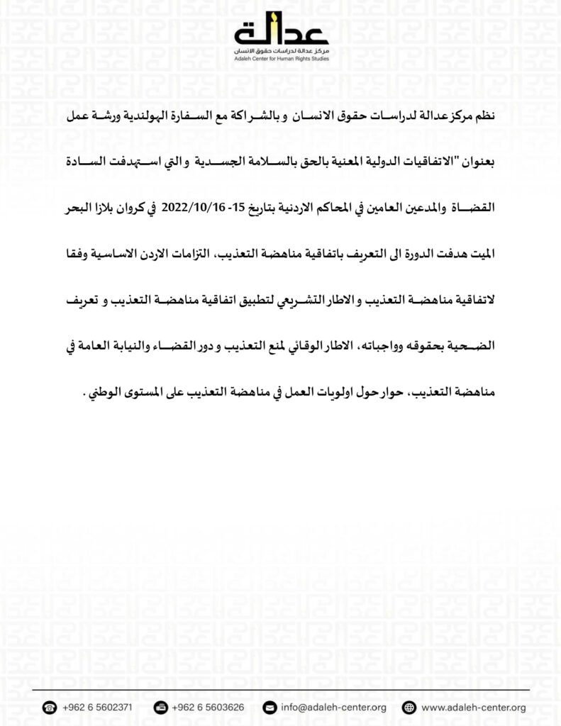 The Adaleh Center for Human Rights Studies was established in 2003 by Jordanian human rights activists as a non-governmental, non-profit organization that operates with political neutrality and seeks to promote human rights values in Jordan and the Arab world.