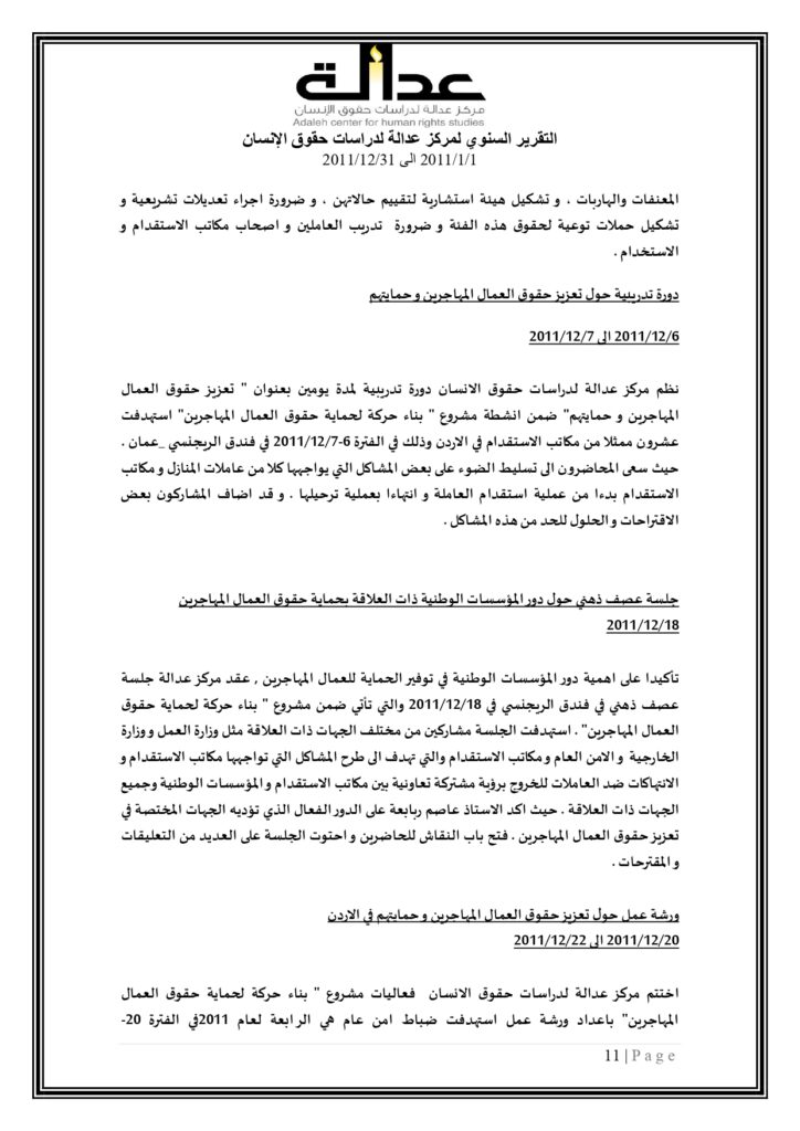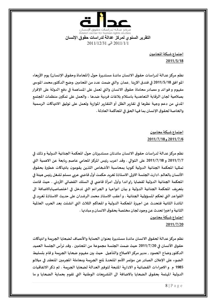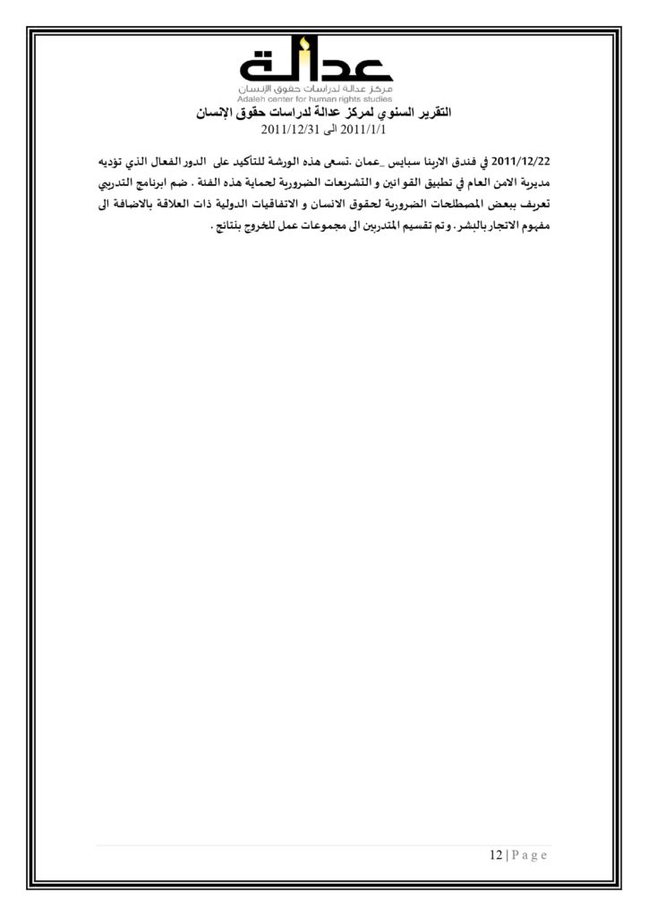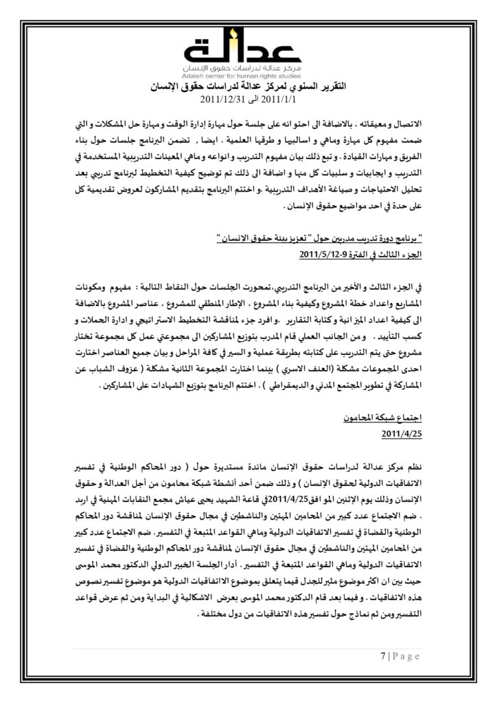 The Adaleh Center for Human Rights Studies was established in 2003 by Jordanian human rights activists as a non-governmental, non-profit organization that operates with political neutrality and seeks to promote human rights values in Jordan and the Arab world.