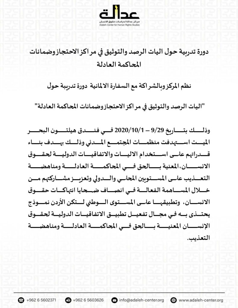 دورة تدربية حول اليات الرصد والتوثيق في مراكز الاحتجاز وضمانات المحاكمة العادلة