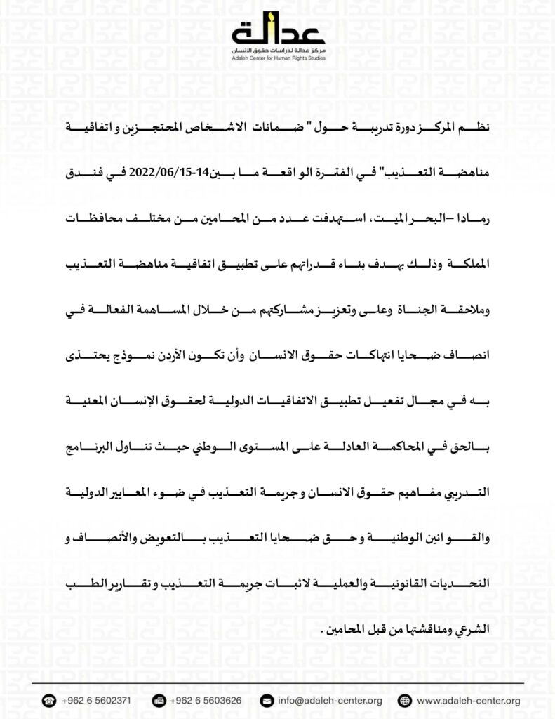 The Adaleh Center for Human Rights Studies was established in 2003 by Jordanian human rights activists as a non-governmental, non-profit organization that operates with political neutrality and seeks to promote human rights values in Jordan and the Arab world.