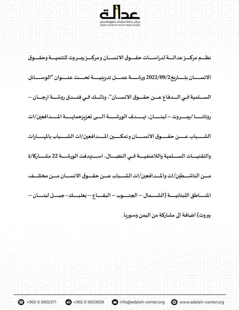 The Adaleh Center for Human Rights Studies was established in 2003 by Jordanian human rights activists as a non-governmental, non-profit organization that operates with political neutrality and seeks to promote human rights values in Jordan and the Arab world.
