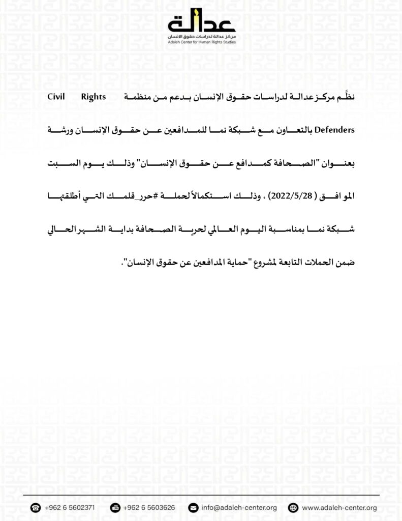 The Adaleh Center for Human Rights Studies was established in 2003 by Jordanian human rights activists as a non-governmental, non-profit organization that operates with political neutrality and seeks to promote human rights values in Jordan and the Arab world.