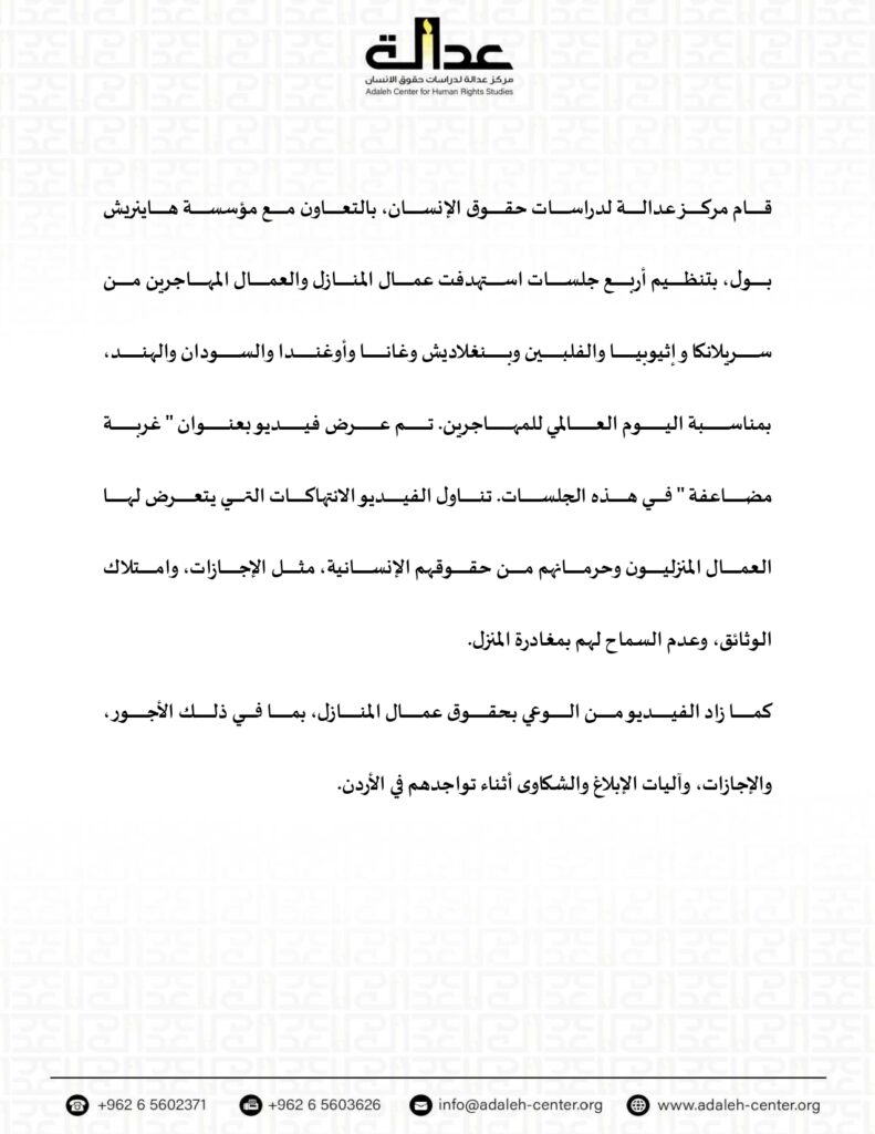 The Adaleh Center for Human Rights Studies was established in 2003 by Jordanian human rights activists as a non-governmental, non-profit organization that operates with political neutrality and seeks to promote human rights values in Jordan and the Arab world.