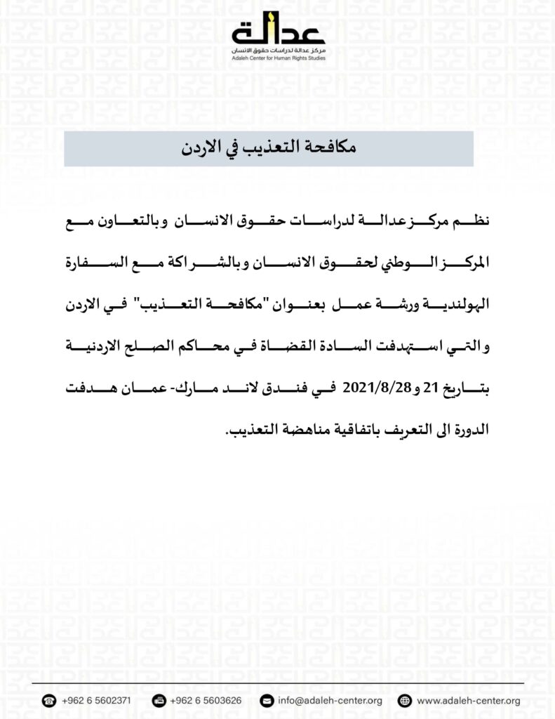 The Adaleh Center for Human Rights Studies was established in 2003 by Jordanian human rights activists as a non-governmental, non-profit organization that operates with political neutrality and seeks to promote human rights values in Jordan and the Arab world.